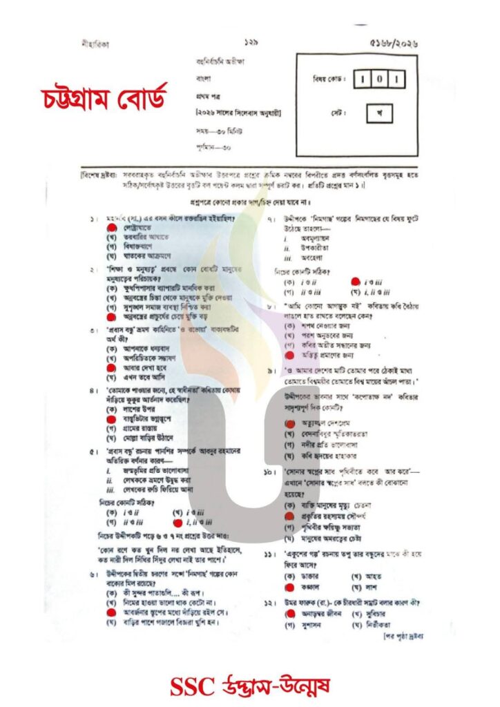 Looking for the SSC 2026 Bangla 1st Paper MCQ Solution for Chattogram Board?
