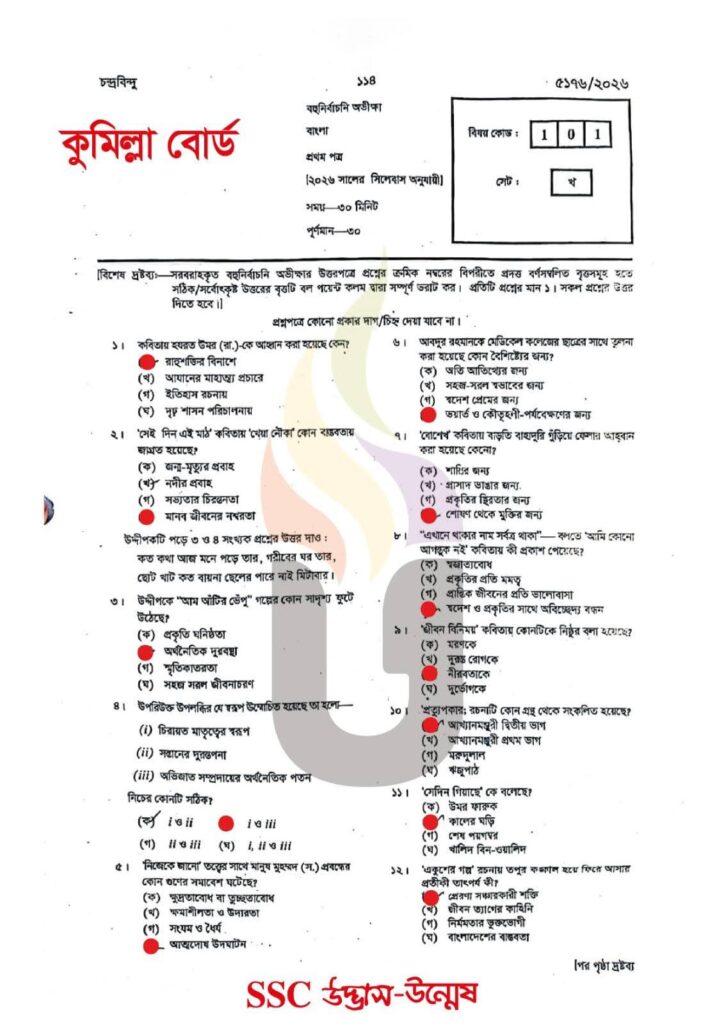 Looking for the SSC 2026 Bangla 1st Paper MCQ Solution for Cumilla Board?