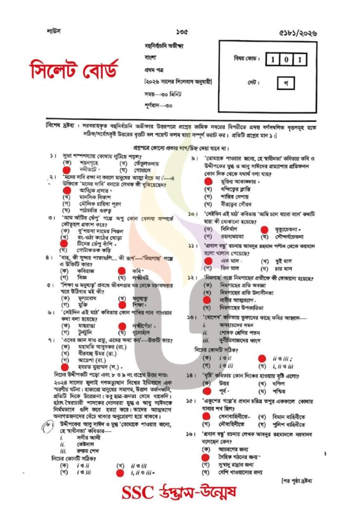 এসএসসি ২০২৬ পরীক্ষার সিলেট বোর্ডের বাংলা ১ম পত্র MCQ সমাধান খুঁজছেন?