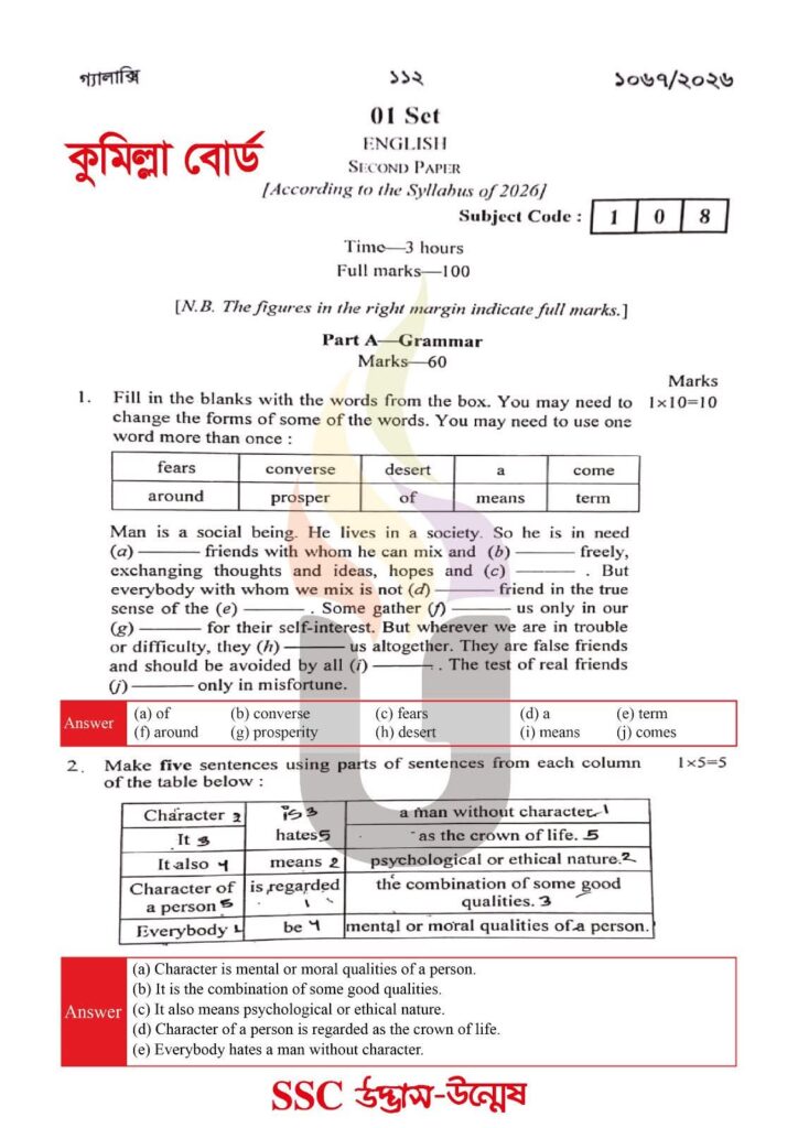This post provides the complete English 2nd Paper solution for SSC 2026 Cumilla Board.