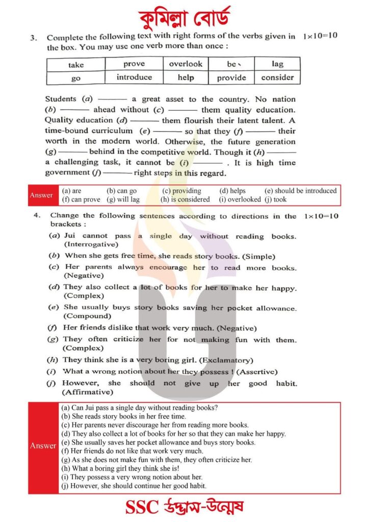 SSC ২০২৬ কুমিল্লা বোর্ডের ইংরেজি ২য় পত্রের সম্পূর্ণ solution এই পোস্টে পাওয়া যাবে।