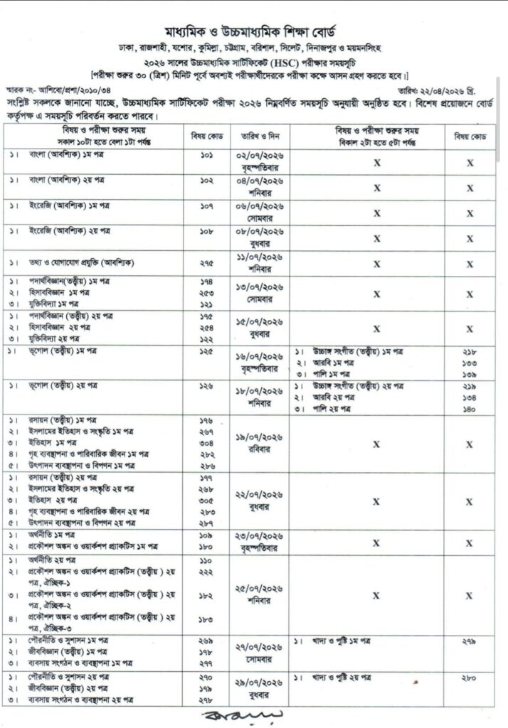 ২০২৬ সালের এইচ. এস. সি. পরীক্ষার রুটিন প্রকাশ। চলুন কখন পরীক্ষা শুরু এবং শেষ হবে জেনে নেওয়া যাক।