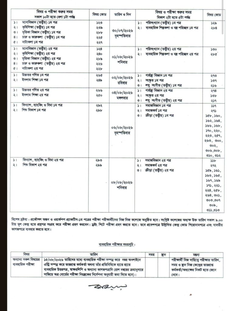 এইচ এস সি পরীক্ষার রুটিন পিডিএফ ২০২৬ | HSC Exam Routine PDF Download 2026